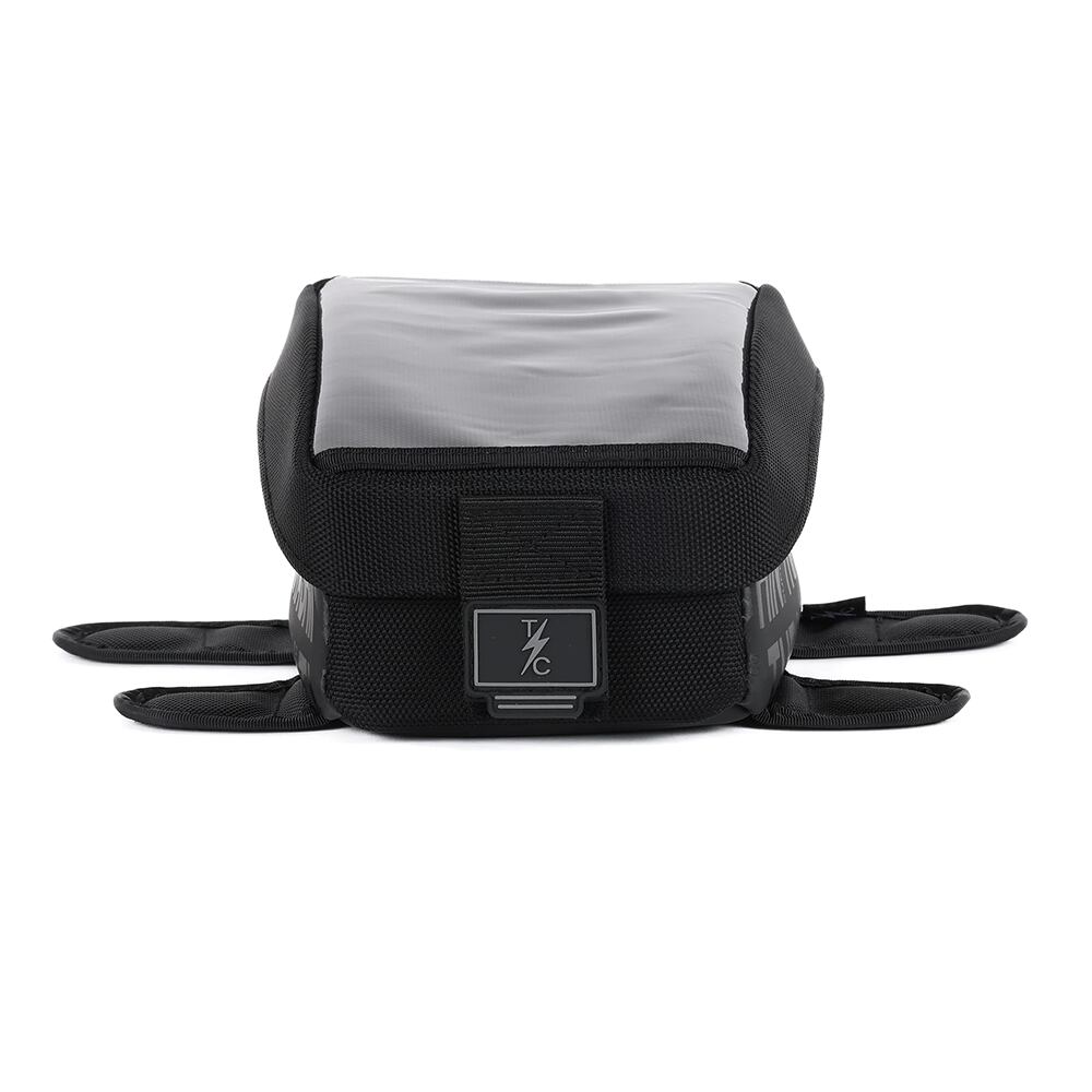 物の出し入れがしやすいタンクバック。バッグは4つの高強度マグネットによりスチール製ガスタンクに取付けて使用します。バッグ表面にはタッチスクリーン対応のスマホポケットを備えています。